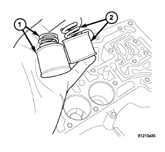 56. Install underdrive (2) and overdrive (1) accumulators and springs.