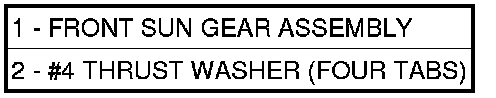 39. Install front sun gear assembly (1) and #4 thrust washer (2).