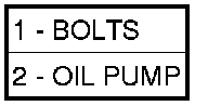52. Install oil pump (2) and torque oil pump-to-case bolts (1) to 30 Nm (265 in. lbs.). Do not reuse original oil pump bolts.