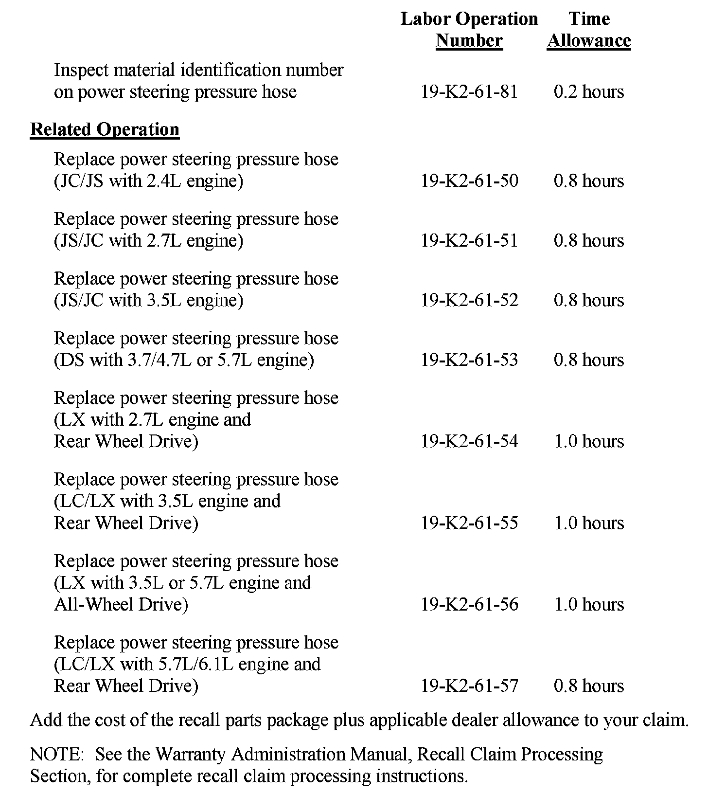 Recall - Power Steering Pressure Hose Replacement: Overview