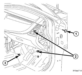3. Install instrument panel fasteners (1, 2, and 3) into driver and passenger sides of vehicle.