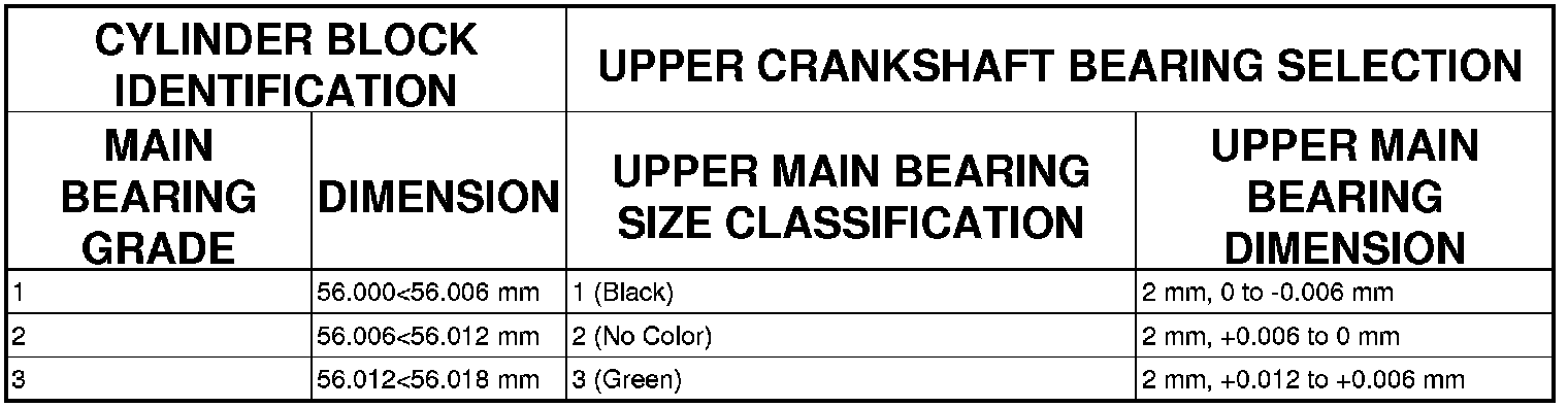 UPPER MAIN BEARING SELECTION