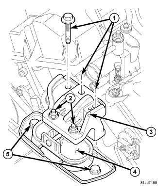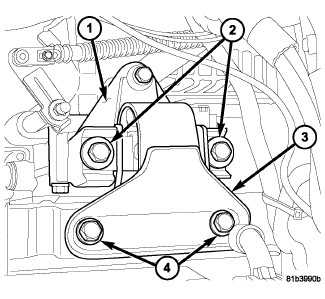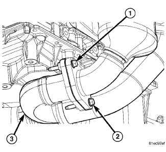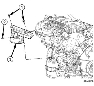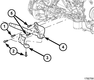 65. If equipped with the 41TE transmission, remove the bolts (1) and (2) and the structural collar (3).