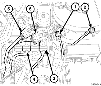 6. Disconnect engine harness connector C2 (4) and transmission harness connector C4 (3) from the PCM.