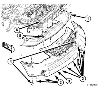 16. Remove five screws (1) retaining the wire harness to the upper core support.