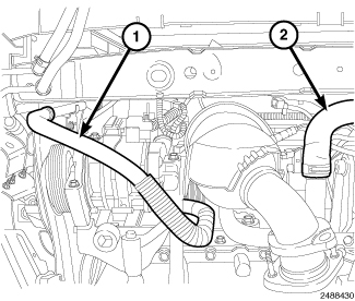 10. Disconnect the fuel supply hose (2) from the fuel rail (1) Service and Repair.
