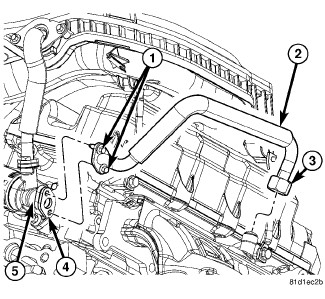 48. Remove the upper radiator hose (5) from the coolant outlet connector (4).