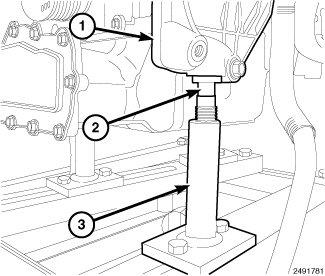 58. Remove the heat shield bolts (2) and the heat shield (3).