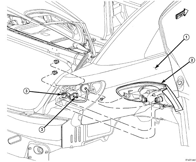 1. Place tail lamp (2) into position.
