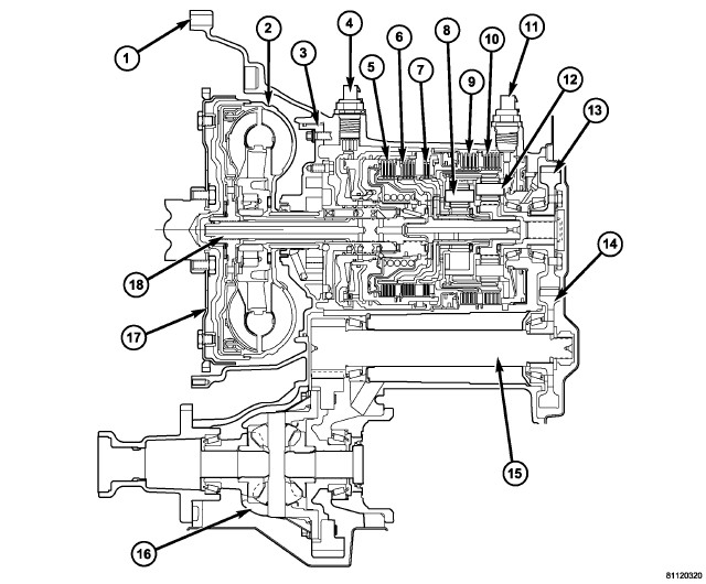 The 41TE is a four-speed transaxle that is a conventional hydraulic/mechanical assembly with an integral differential, and is controlled with adaptive electronic controls and monitors. The hydraulic system of the transaxle consists of the transaxle fluid, fluid passages, hydraulic valves, and various line pressure control components. An input clutch assembly which houses the underdrive, overdrive, and reverse clutches is used. It also utilizes separate holding clutches: 2nd/4th gear and Low/Reverse. The primary mechanical components of the transaxle consist of the following: