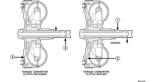 The engagement and disengagement of the TCC are automatic and controlled by the Powertrain Control Module (PCM). The engagement cannot be activated in the lower gears because it eliminates the torque multiplication effect of the torque converter necessary for acceleration. Inputs that determine clutch engagement are: coolant temperature, vehicle speed and throttle position. The torque converter clutch is engaged by the clutch solenoid on the valve body. The clutch will engage at approximately 56 km/h (35 mph) with light throttle, after the shift to third gear.