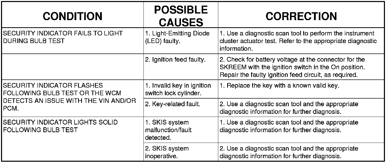 The Vehicle Theft Security System (VTSS) is divided into two basic subsystems: Vehicle Theft Alarm (VTA) and Sentry Key Immobilizer System (SKIS). Following are the recommended procedures for diagnosis and testing of each of these two subsystems.