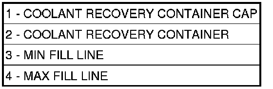 NOTE: It may be necessary to add additional coolant to the coolant recovery container after three or four warm-up/cool down cycles to maintain coolant level between the MIN and MAX marks; as additional trapped air is removed from the system.