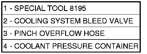 4. Remove cooling system pressure cap. Attach Filling Aid Funnel 8195, to coolant pressure container filler neck.