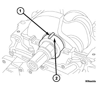 2. Place a piece of Plastigage (1) across the entire width of the journal. (In addition, suspected areas can be checked by placing the Plastigage in the suspected area). Torque the bearing cap bolts of the bearing being checked to the proper specifications.