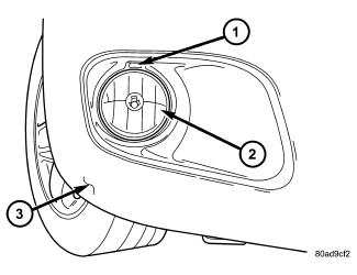 To adjust fog lamp unit alignment, rotate alignment screw (1) to achieve the specified low beam hot spot pattern.