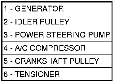 Accessory drive belt tension for all engines is maintained by a non-adjustable automatic drive belt tensioner.