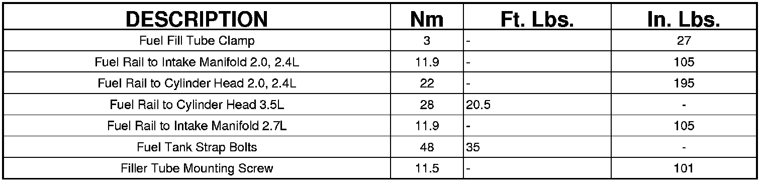 Fuel Delivery Torque Specifications