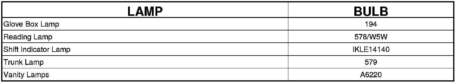CAUTION: Do not use bulbs that have a higher candle power than the bulb listed in the Bulb Application Table. Damage to lamp can result.