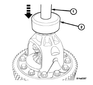 9. Position differential side bearing cone (2) onto differential.