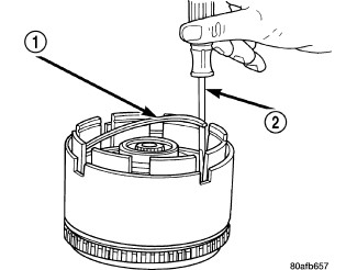 18. Install the snap ring (1) using a screwdriver (2).
