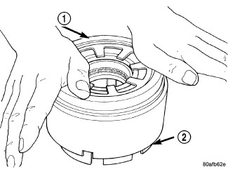 8. Install input hub tapered snap ring (tapered side up with tabs in cavity) (2).