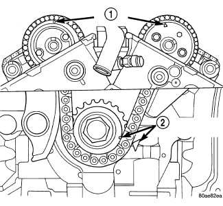 NOTE: When camshaft sprocket bolts are removed, the camshafts will rotate in a clockwise direction.