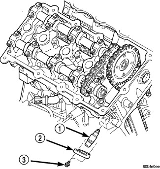9. Remove timing chain guide access plugs from cylinder heads.