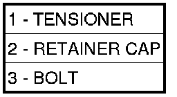 7. Remove primary timing chain tensioner retainer cap (2) and tensioner (1) from right cylinder head.