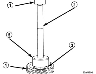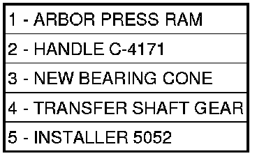 32. Install new transfer gear bearing cone (3) to transfer gear (4) using Installer 5052 (5).