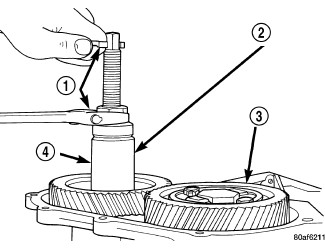 34. Install the transfer shaft gear (4) using Installer 6261 (2).
