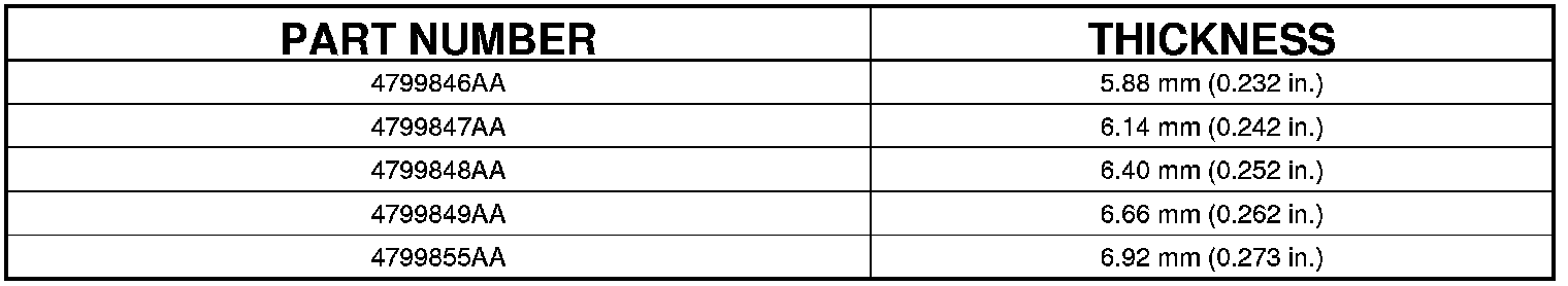 i. Remove the gauging shim and install the proper shim indicated by the chart.