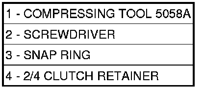 50. Using Compressing Tool 5058A (1), compress 2/4 clutch return spring just enough to install snap ring (3).