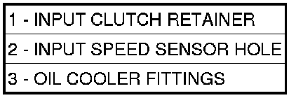 57. Install input clutch assembly into position and verify that it is completely seated by viewing through input speed sensor hole (2). If view through input speed sensor hole is not as shown in the below view, the input clutch assembly is not seated properly.