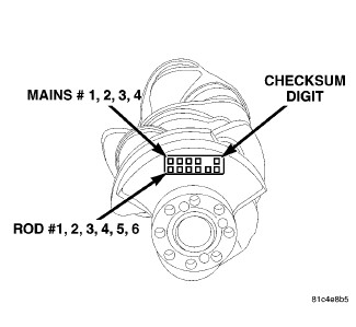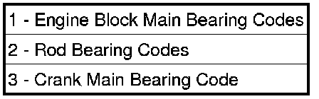 The main bearings use a "select fit" system to achieve proper oil clearances between the bearings and the crankshaft. When main bearings are being selected for a new crankshaft, the block and crankshaft grade identification marks must be used to identify the correct main bearings to use.