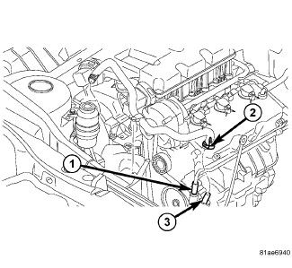 25. Disconnect the electrical connector (2) at the crankshaft position sensor (3).