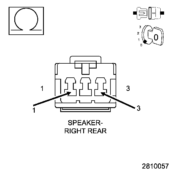 NOTE: The graphic shows the connector for reference only. Measure between the speaker terminals.