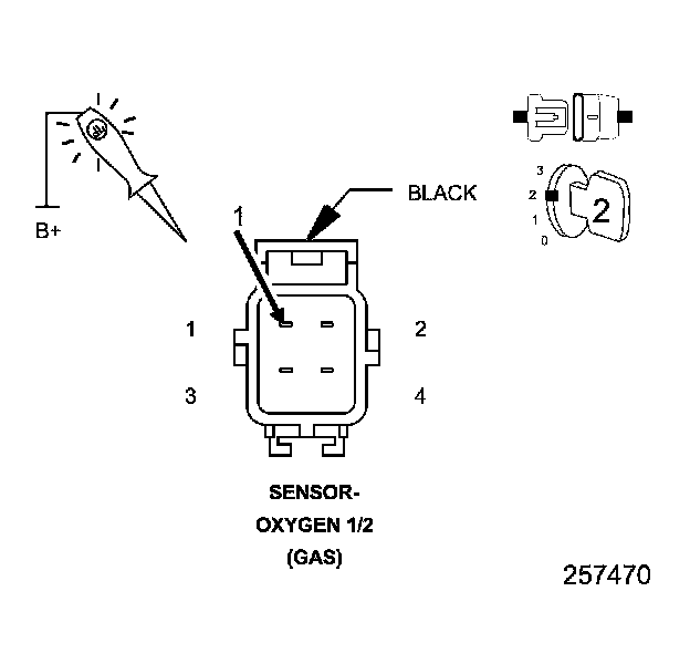 1. Using a 12 volt test light connected to 12 volts, check the Ground circuit in the Oxygen Sensor 1/2 harness connector.