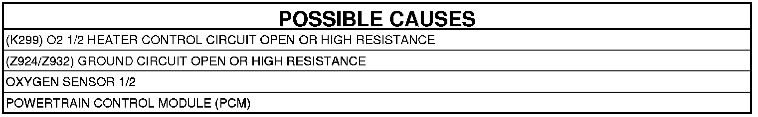 3. (K299) O2 1/2 HEATER CONTROL CIRCUIT OPEN OR HIGH RESISTANCE