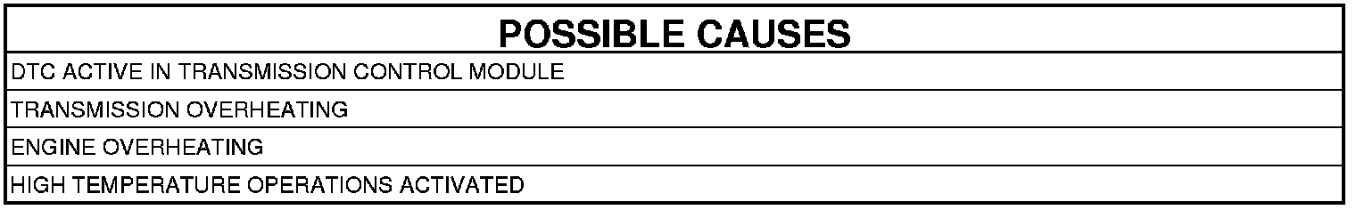 This DTC will set to indicate an overheating transmission or engine cooling system. Extended transmission operation above 115° C (240° F) will reduce the durability of the transmission and should be avoided. Correcting the cooling system operation or installing an additional transmission oil cooler will improve transmission durability, especially under extreme conditions such as city/construction stop and go traffic, trailer towing, aggressive driving in low gear, or operation in mountainous areas.