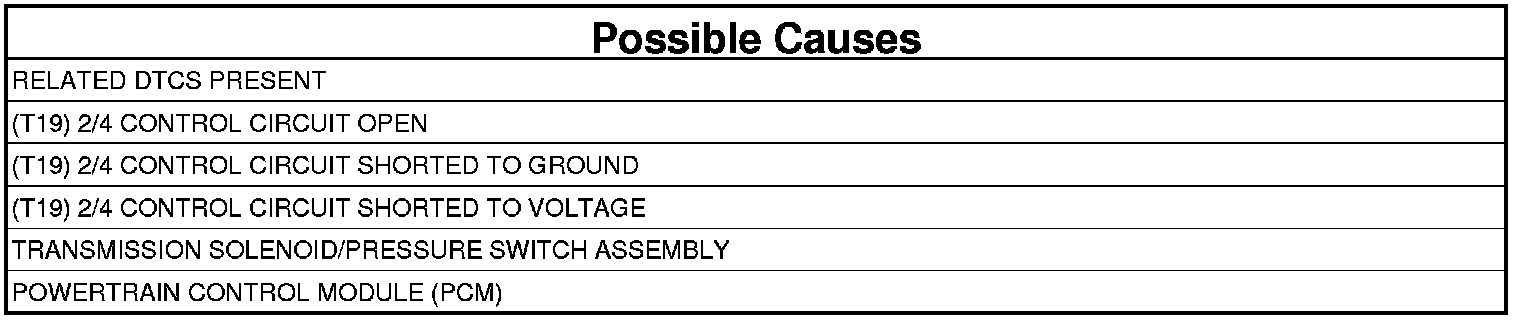 - Repair the (T19) 2/4 Control circuit for a short to voltage.