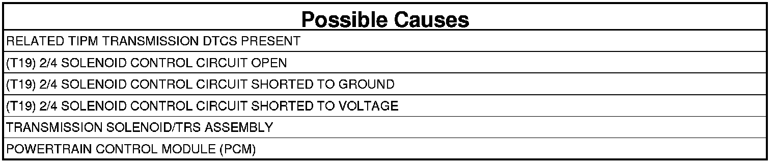 - Repair the (T19) 2/4 Solenoid Control circuit for a short to ground.