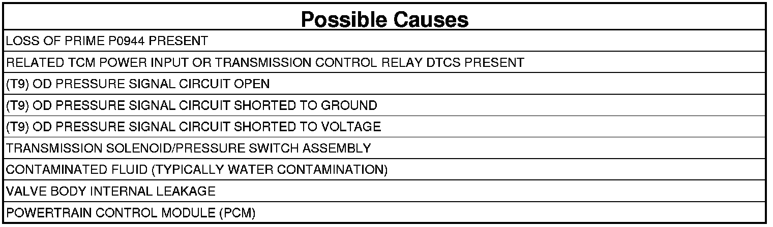 - Repair the (T9) OD Pressure Signal circuit for a short to voltage.