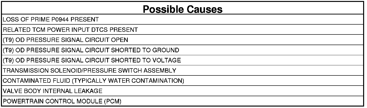 - Repair the (T9) OD Pressure Signal circuit for a short to voltage.