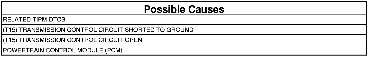 - Repair the (T15) Transmission Control circuit for a short to ground.