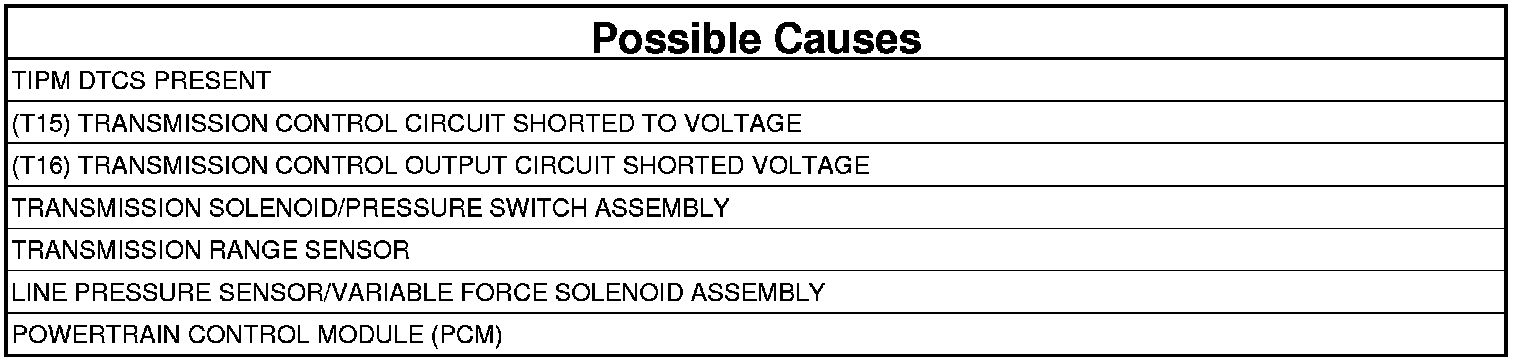 - Repair the (T15) Transmission Control circuit for a short to voltage.