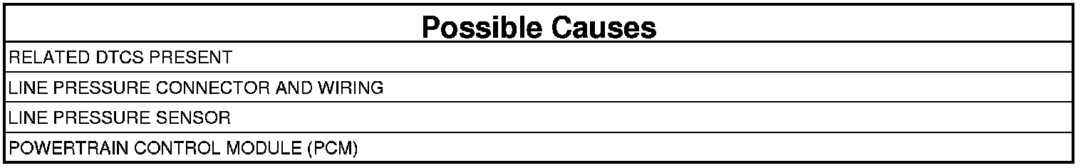The Powertrain Control Module (PCM) continuously monitors Actual Line Pressure and compares it to Desired Line Pressure. If the Actual Line Pressure reading is more than 172.4 kPa (25 psi) higher than the Desired Line Pressure, but is less than the highest Line Pressure ever used in the current gear, the DTC sets.