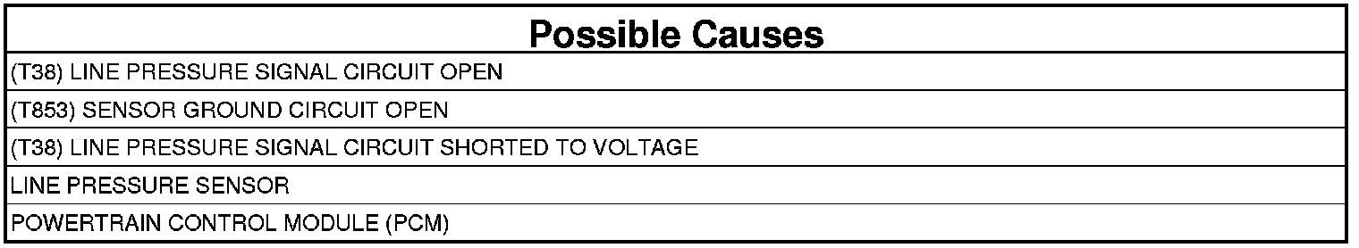 - Repair the (T38) Line Pressure Signal circuit for a short to voltage.