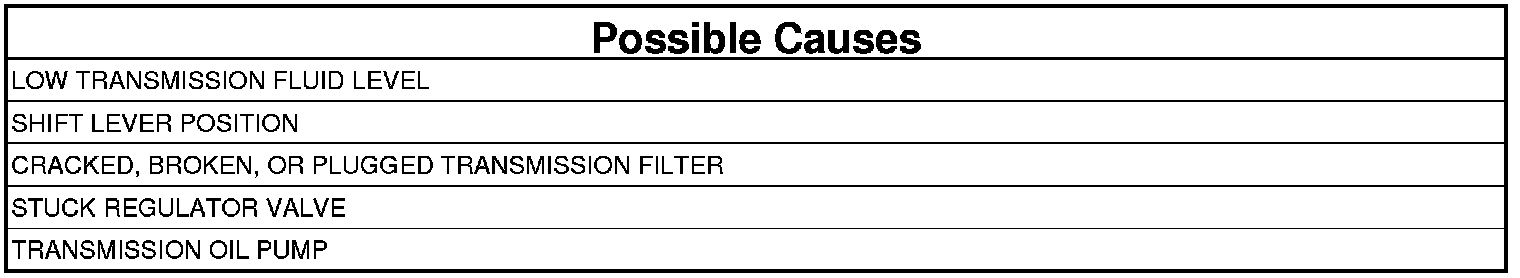 4. The Transmission must be at operating temperature prior to checking pressure. Cold transmission fluid will result in higher pressure readings.
