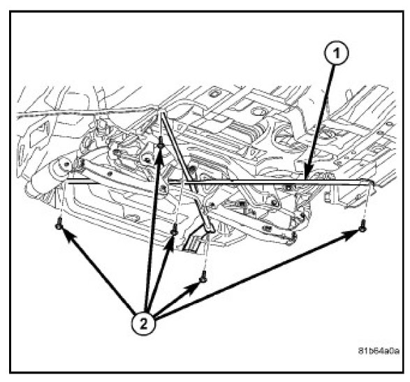 2. Remove the mounting screws (1) securing the rear crossbrace/reinforcement brackets (2).